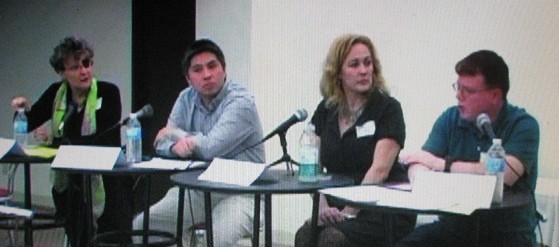 January 29, 2010, Sherwood Oaks College held its second “Honesty Panel” of the day by Sony Studios, providing unprecedented candid feedback on loglines to the screenwriters in attendance. Panelists included, left to right, Bob Kosberg (not shown), producer Suzanne Lyons, development exec Edward C. Wang, producer Susan Johnston, and moderator James Jordan.